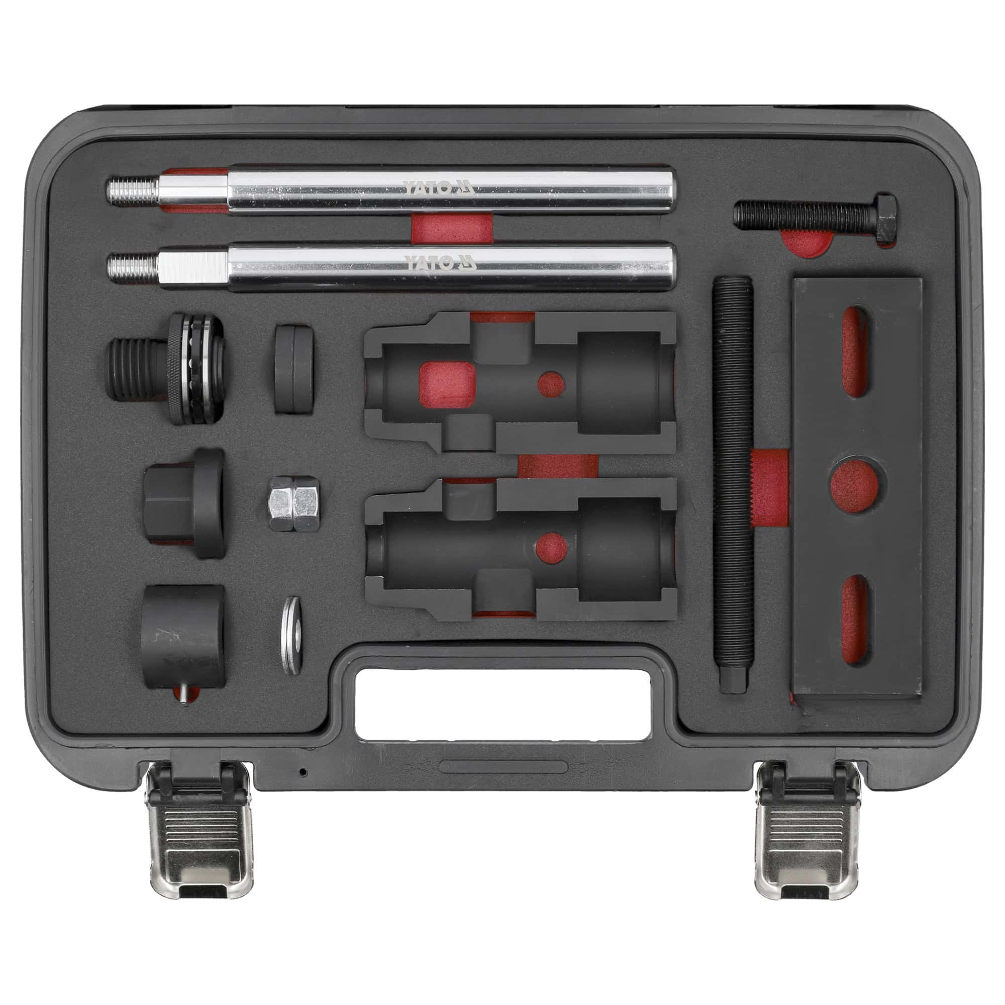 Tämä 16-osainen dieselsuuttimien irrotussarja on suunniteltu erityisesti Ford-ajoneuvoihin, joissa on 2.0 EcoBlue -dieselmoottori. Sarjan avulla suuttimet voidaan irrottaa sylinterikannesta tehokkaasti ja turvallisesti ilman riskiä vaurioittaa niitä tai moottorin muita osia. Tämä on erityisen tärkeää nykyaikaisten dieselmoottoreiden tarkkuutta vaativissa huoltotöissä.