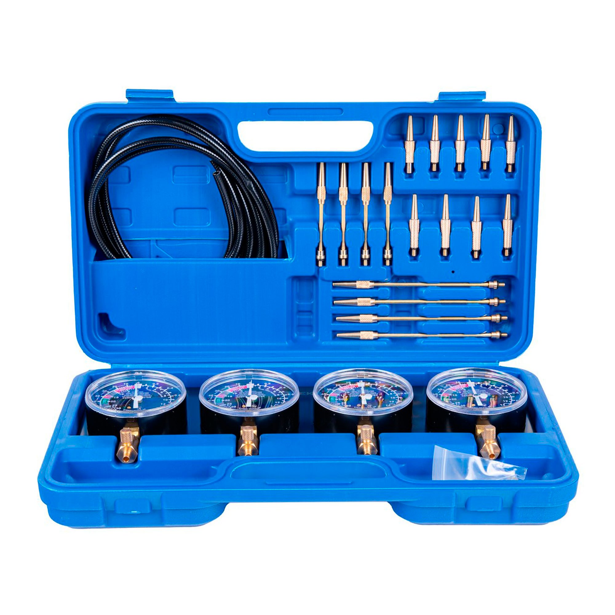 Neljän tarkan painemittarin, joustavien letkujen ja 17 eri halkaisijalla ja pituudella varustetun sovittimen ansiosta se mahdollistaa alipaineen tarkan tasapainotuksen yksittäisten kaasuttimien välillä. Tämä varmistaa moottorin optimaalisen toiminnan, tasaisen palamisen ja paremman kaasunvasteen.