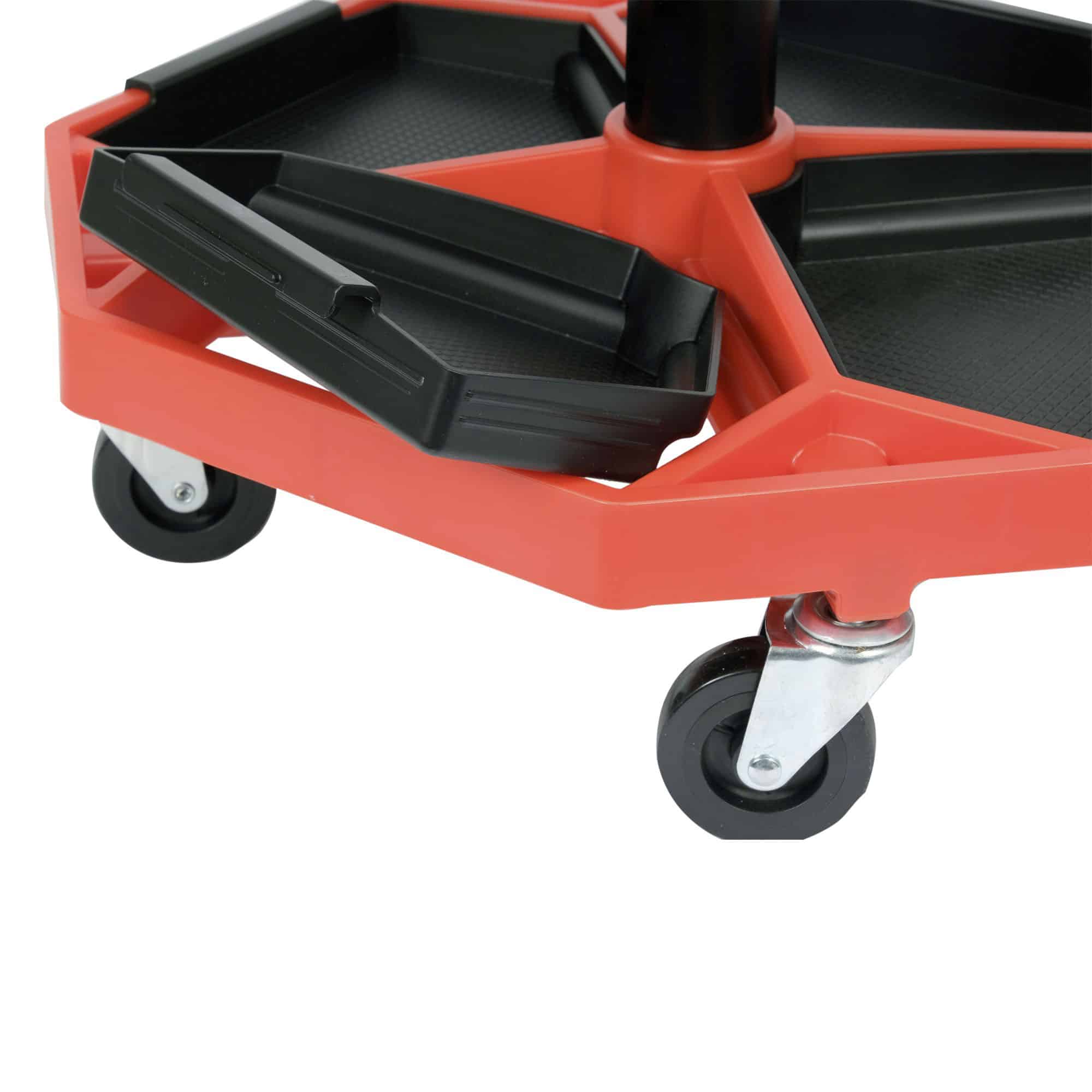 Pyörivä verstastuoli, jossa on lokerot pienten tarvikkeiden ja työkalujen säilytykseen. Istuinkorkeus on säädettävissä välillä 41–55 cm. Istuin on pehmustettu vaahtomuovilla ja päällystetty pehmeällä vinyylillä, joka kestää rasvaa ja öljyä. Kestävä teräsrunko takaa pitkän käyttöiän, ja neljä kääntyvää pyörää mahdollistavat vaivattoman liikkumisen työpisteessä. Soveltuu erinomaisesti korjaamoihin ja verstaisiin.