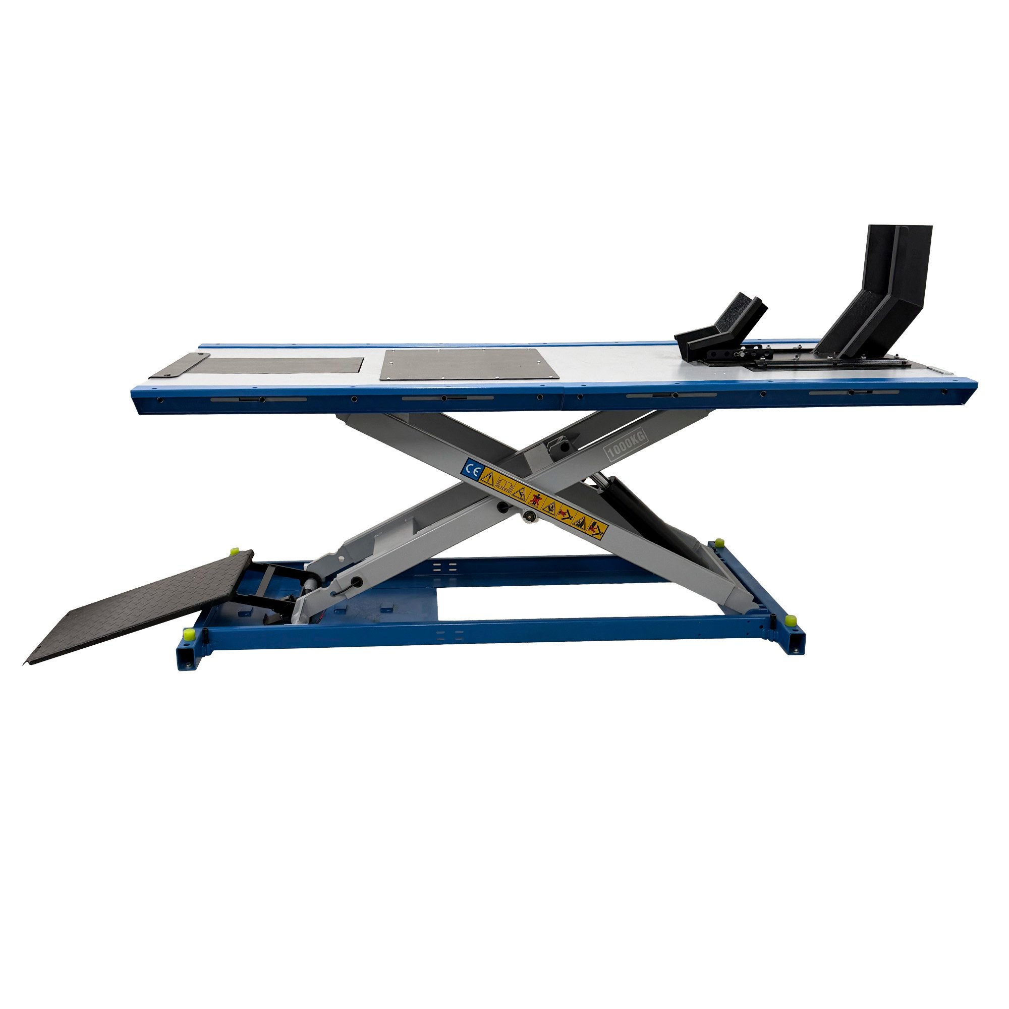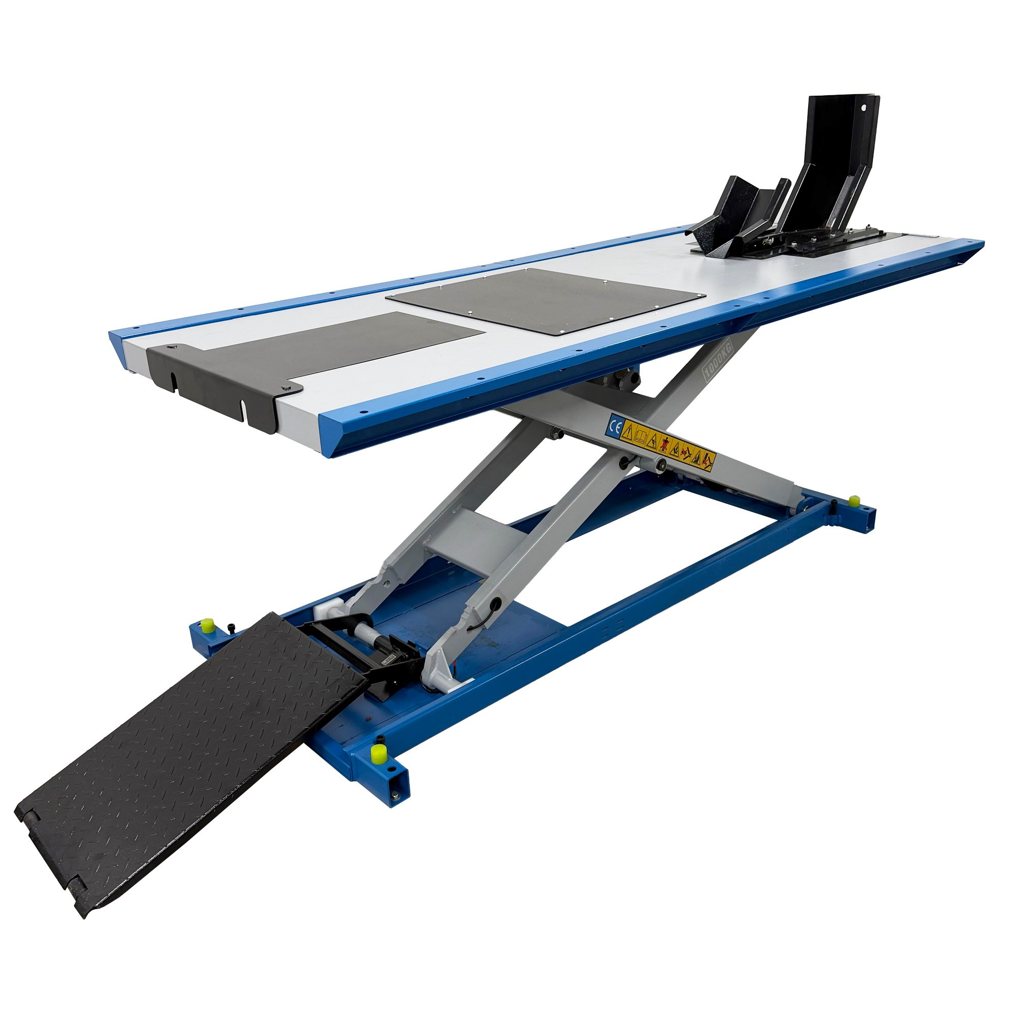 Moottoripyörän nostin joka suunniteltu erityisesti raskaille moottoripyörille ja/tai matalalle maavaralle. Nostin on täysin sähköinen ja varustettu omalla hydraulimoottorilla, paineilmaa ei tarvita!
