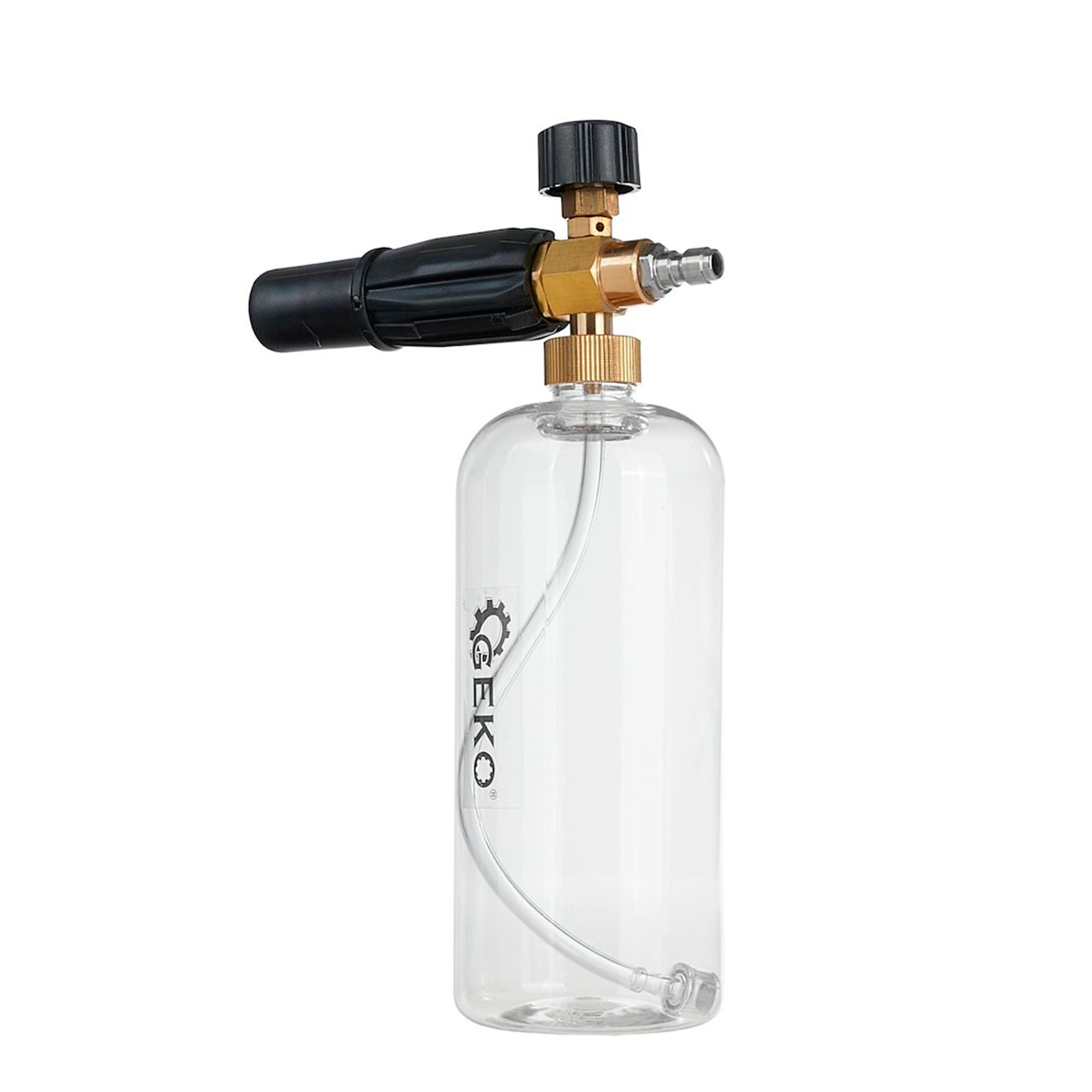 Geko 1000 ml pesuainevaahdotin pikaliipasinliitännällä painepesureihin. Erinomainen työkalu tehokkaaseen ja vaivattomaan autonpesuun, sekä muiden pintojen puhdistukseen. Valmistettu korkealaatuisesta muovista ja messingistä.